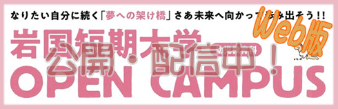 子どもたちの成長を促すための柔軟な心と身体を育む、岩国短期大学ならではの取り組みがここにあります。豊かな人間性と使命感にあふれ、確かな保育観・子ども観に基づく保育技術を身につけた、優れた保育者の養成をめざします。また2年間で幼稚園教諭二種免許状と保育士資格の二つの国家資格を取得することができます。 幼児教育科 学科紹介 学校案内 本学の「学びSTYLE」、取得可能な資格、卒業後の進路、就職支援体制や、地域交流での学びなどをわかりやすく紹介しています。 オープンキャンパス 岩国短期大学で「保育のスペシャリスト」をめざしませんか。本学のオープンキャンパスの情報をご覧いただけます。 公開講座のご案内 地域の皆様の ”自ら求めて学習し続けたい ” という強いご要望にお応えし、郷土文化の活性化に貢献すべく本公開講座を設けています。 幼児教育科ホットニュース プロの保育者になるために日々努力を重ねている学生たちの様子を発信していくページです。 IWATAN親子フェスタ 第11回Iwatan親子フェスタは、Webでの開催となりました。配信期間は令和4年3月6日(日)10:00から3月31日(木)17:00までです。 高大連携プログラム 保育系に進学希望をもっておられる高校生の方を対象とした本学独自の「高大連携プログラム」を行っています。 Iwatan親子広場 さまざまな遊びや製作活動を通して、子どもたちの心豊かな成長を願い、親子で楽しい時間を過ごしていただく遊びの広場です。 客員教授 特別講義 本学の客員教授に就任されている方々による特別講義の様子をお伝えしています。 緊急のお知らせ