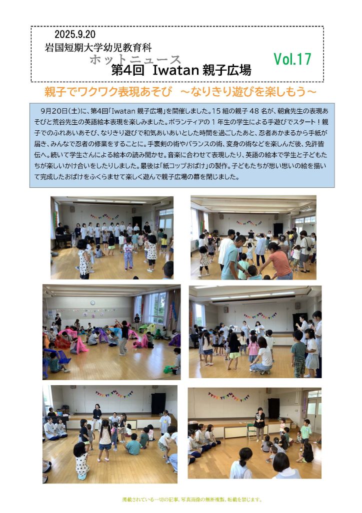 「イベント」カテゴリーアーカイブ ← 過去の投稿 第6回オープンキャンパス 2025.09.26|Takeno| カテゴリー: イベント, オープンキャンパス, 幼児教育科 第4回Iwatan親子広場 2025.09.22|Takeno| カテゴリー: イベント, ボランティア活動, 学内活動, 幼児教育科 お店屋さんごっこ 2025.07.04|Takeno| カテゴリー: イベント, 学内活動, 幼児教育科 Iwatan親子広場(第2回) 2025.06.17|Takeno| カテゴリー: イベント, 幼児教育科 フォローアップセミナー 2025.06.10|Takeno| カテゴリー: イベント, 幼児教育科 Iwatan親子広場(第1回) 2025.06.03|Takeno| カテゴリー: イベント, 学内活動, 幼児教育科 就職ナビ in いわたん 2025.05.27|Takeno| カテゴリー: イベント, 学内活動, 幼児教育科 第55回入学式 2025.04.07|Takeno| カテゴリー: イベント, 幼児教育科 第14回「Iwatan親子フェスタ」 2025.03.17|Takeno| カテゴリー: イベント, 幼児教育科 第4回Iwatan親子広場 2024.08.07|Takeno| カテゴリー: イベント, ボランティア活動, 学内活動 ← 過去の投稿