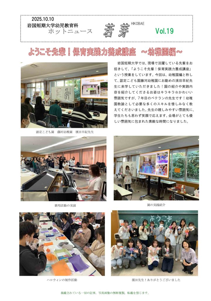 「幼児教育科」カテゴリーアーカイブ ← 過去の投稿 ようこそ先輩!保育実践力養成講座(幼稚園編・認定こども園編) 2025.10.17|Takeno| カテゴリー: 幼児教育科 第6回オープンキャンパス 2025.09.26|Takeno| カテゴリー: イベント, オープンキャンパス, 幼児教育科 第4回Iwatan親子広場 2025.09.22|Takeno| カテゴリー: イベント, ボランティア活動, 学内活動, 幼児教育科 第5回オープンキャンパス 2025.08.08|Takeno| カテゴリー: オープンキャンパス, 幼児教育科 保育者対象研修会 2025.08.06|Takeno| カテゴリー: 幼児教育科 第3回Iwatan親子広場 2025.07.11|Takeno| カテゴリー: ボランティア活動, 学内活動, 幼児教育科 お店屋さんごっこ 2025.07.04|Takeno| カテゴリー: イベント, 学内活動, 幼児教育科 Iwatan親子広場(第2回) 2025.06.17|Takeno| カテゴリー: イベント, 幼児教育科 学生交流会 2025.06.13|Takeno| カテゴリー: 学内活動, 幼児教育科 フォローアップセミナー 2025.06.10|Takeno| カテゴリー: イベント, 幼児教育科 ← 過去の投稿
