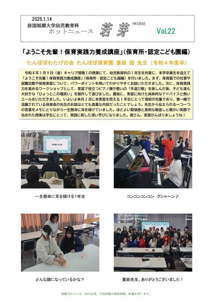 「幼児教育科」カテゴリーアーカイブ ← 過去の投稿 ようこそ先輩!保育実践力養成講座(保育所・認定こども園編) 2026.01.14|Takeno| カテゴリー: 学内活動, 幼児教育科 ウインター・コンサート 2025.12.23|Takeno| カテゴリー: イベント, 学内活動, 幼児教育科 第66回中・四国保育学生研究大会 2025.12.01|Takeno| カテゴリー: イベント, 学外活動, 幼児教育科 ようこそ先輩!保育実践力養成講座(幼稚園編・認定こども園編) 2025.10.17|Takeno| カテゴリー: 幼児教育科 第6回オープンキャンパス 2025.09.26|Takeno| カテゴリー: イベント, オープンキャンパス, 幼児教育科 第4回Iwatan親子広場 2025.09.22|Takeno| カテゴリー: イベント, ボランティア活動, 学内活動, 幼児教育科 第5回オープンキャンパス 2025.08.08|Takeno| カテゴリー: オープンキャンパス, 幼児教育科 保育者対象研修会 2025.08.06|Takeno| カテゴリー: 幼児教育科 第3回Iwatan親子広場 2025.07.11|Takeno| カテゴリー: ボランティア活動, 学内活動, 幼児教育科 お店屋さんごっこ 2025.07.04|Takeno| カテゴリー: イベント, 学内活動, 幼児教育科 ← 過去の投稿