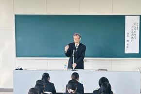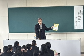 11月21日(金)、本学客員教授白木勲氏による特別講義が、1年生「キャリア開発Ⅰ」2年生「キャリア開発Ⅲ」の時間に行われました。特別講義は今年度で8年目となり、1年生、2年生合同の対面で行われました。 「おとなの考え こどもの思い」と題して日々の生活における考え方や生き方についてご教授いただきました。最初に、公益財団法人岩国市文化芸術振興財団代表理事長のお立場から、岩国市の施策についてお話しいただきました。岩国市にとって米軍基地の存在は大きい。国と岩国市がお互いを尊重しながら、言うべきことを伝えていく共存の立場をとっていること、補助金によって行われた施策について、学生とやりとりをしながら分かりやすくお話しいただきました。 次に、岩国市の文化芸術振興プランと財団が主催する様々なイベントについて分かりやすく説明していただきました。「0歳からのクラシックコンサート」など普段見ることができない方にも参加してもらえる企画や、神楽、民謡、将棋の大会など地元団体を中心に参加できる企画を考え取り組んでおられることを話されました。 日々の生活で気づかされたことでは、日本人の感謝と思いやりの精神は、海外でも注目されており、素晴らしいものであると称賛されている。勝敗に関わらず相手を尊重する気持ちが大切であると話されました。 また、おとなとこどもの目線の差では、子どものエピソードを通して、見える景色や気持ちの持ち方など心の目はそれぞれ異なること、違って当たり前ということを意識してこどもたちと関わることが大切であるなど、学生がすぐに実践できることについてお話いただきました。 最後に、例年好評の「明日への一口アドバイス」を学生目線で語っていただきました。その中で「苦しい時は登り坂」「イラっと来たら深呼吸」「自分と似ている人からは共感が、自分と似ていない人からは教訓が得られる」「笑顔は副作用のない良薬」など、今後の学びに繋がる言葉ばかりで、学生一人ひとりの心にしっかりと届きました。白木先生の温かいお人柄で、わかりやすく岩国市の文化施策をお話いただくとともに、社会人になる学生にとって、貴重な人生のアドバイスをたっぷりいただけた特別講義でした。